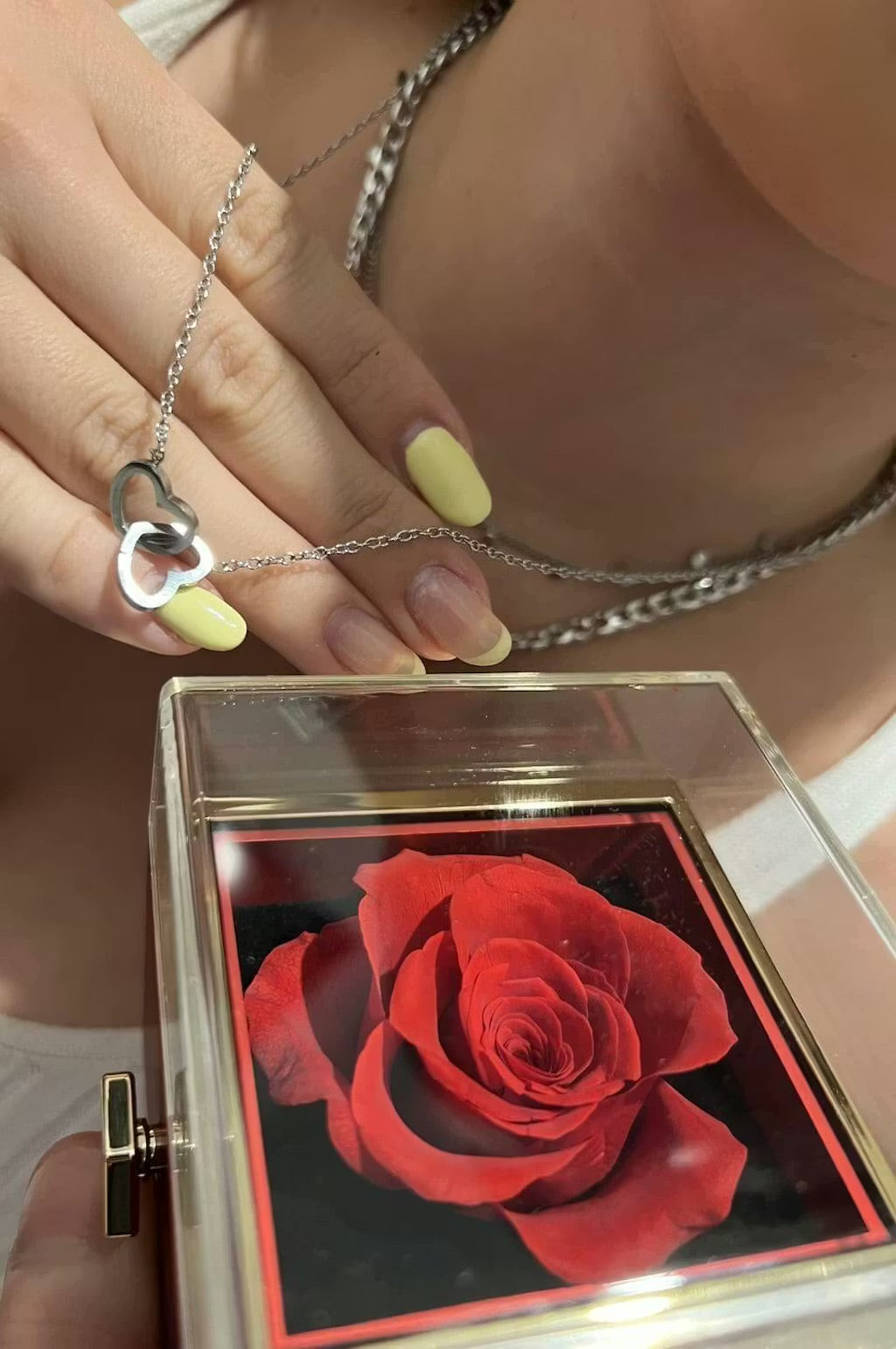 Imagez sa réaction lorsqu'elle découvrira le collier personnalisé caché derrière la magnifique rose… ❤